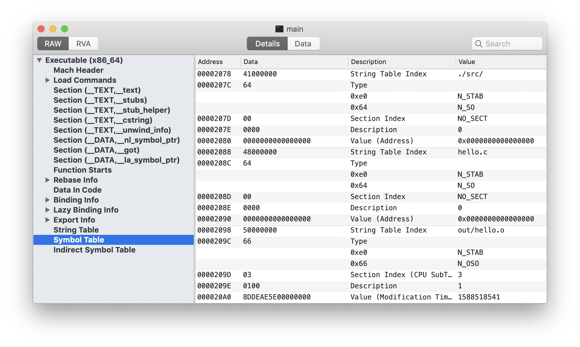 As explained earlier, Mach-O executables would store paths to the object files which contain debug data in OSO entries. You can run the nm command on a binary with debug information to inspect such entries: