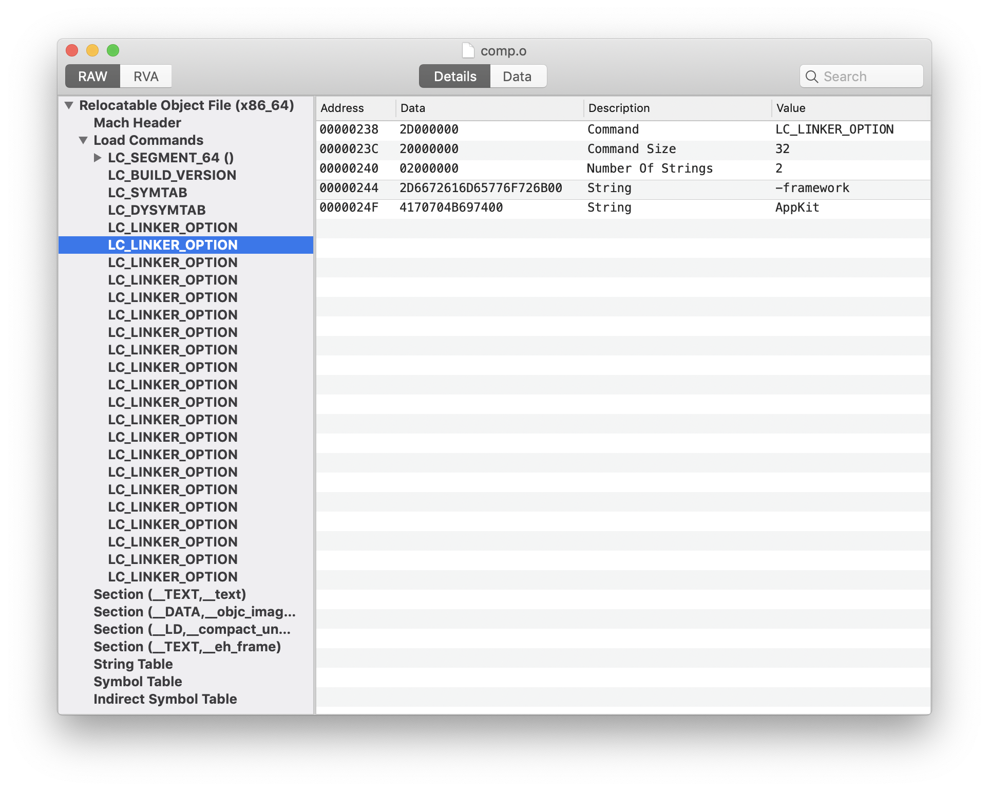 The above means that if we were to use #import <zlib.h> with modules turned on, -lz will be automatically inserted by the linker. We can verify this using otool -l: