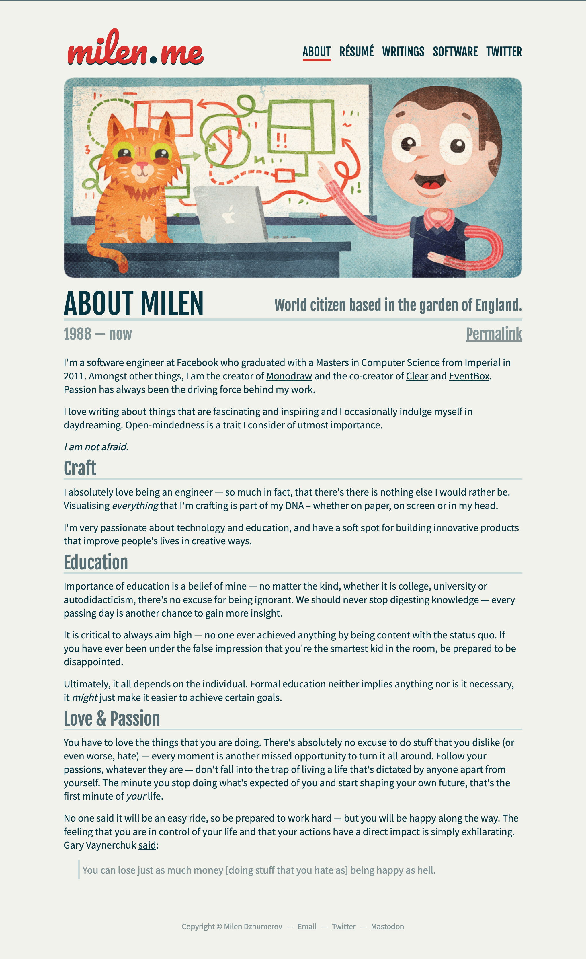 An overarching theme in my life for the past decade has been the pursuit of simplicity over complexity, especially when it comes to software. I optimised the new design for maximum signal to noise: